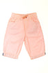 Taille élastique ajustable, 5 poches, revers aux cuisses.
