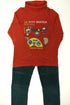 Pantalon en velours fin, taille ajustable, fermeture éclair et pression, 4 poches, genouillères marquées, sous-pull, col roulé, broderie et sérigraphie.