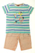 Bermuda, taille élastique avec cordons de serrage, 4 poches, effet terni d'origine, tee-shirt manches courtes, sérigraphie.