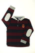 Col plat contrasté, poignets resserrés, boutonnière masquée, coudières, fentes renforcées sur les côtés, écusson, légèrement terni.