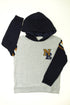 Capuche doublée, poignets et taille resserrés, 2 poches, lettres en éponge bouclette appliquées.