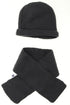 Point mousse, revers au bonnet, tour de tête 47 à 49cm, écharpe assortie.
