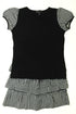 Tee-shirt manches courtes, liens noués au col, manches Vichy resserrées, jupe, taille élastique, volants Vichy.