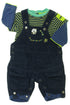 Salopette en velours fin doublée, bretelles réglables boutonnées, pressions à l'entrejambe, 3 poches, revers aux chevilles, broderie, tee-shirt, manches longues en trompe l'œil, entièrement fermé par pressions dans le dos.