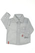 Col plat, poche poitrine, poignets boutonnés, sérigraphie, broderie.