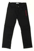 Taille ajustable, fermeture éclair et pression, 4 poches, broderie.