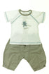 Tee-shirt manches courtes, entièrement fermé dans le dos, sérigraphie, sarouhel en lin, taille élastique, boutons décoratifs aux chevilles.