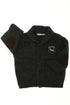 Col châle, revers aux poignets, 2 poches, taille resserrée, écusson, coudières.