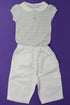 Pantalon taille élastique, 3 poches, body manches courtes, col claudine fermé par pressions dans le dos, pressions à l'entrejambe.