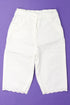 Taille élastique boutonnée, 3 poches, finitions en broderie anglaise.