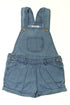 Bretelles réglables boutonnées, 5 poches, revers aux cuisses.