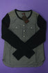 Blouse fermée par pressions, 2 poches poitrine, cloutée aux épaules, attention c'est une taille 14 ans, NEUVE!