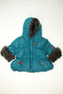 Molletonnée, fermeture éclair masquée par un rabat boutonné, fourrure à la capche et aux poignets, 2 poches, broderie.