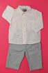 Pantalon doublée, taille élastique, jambes retroussables, 2 poches, chemise boutonnée, col plat, poche poitrine, poignets boutonnés.