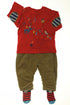 Pantalon doublé, taille élastique, tee-shirt manches longues, entièrement fermé par pressions dans le dos, sérigraphie, coudières, chaussettes assorties.