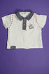 Polo à manches courtes, col plat en jean, entièrement fermé par pressions dans le dos, sérigraphie effet vieilli d'origine, bouton de courtoisie, superbe!