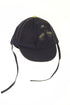 Doublé, visière rigide, liens à nouer au menton, élastique dans la nuque, tour de tête 43cm.