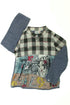 Boutonnée devant, 2 poches poitrine, poignets boutonnés, patchwork.