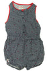 Boutonné devant, sans manches, élastiques à la taille et aux cuisses, fluide.