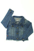 Col plat, boutonnée, 2 poches, effrangée au bas, broderie, perles de rocaille, effet vieilli d'origine.