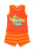 Débardeur fermé par pressions à l'épaule, motifs appliqués, broderie, short rayé assort, taille élastique.