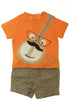 Short, taille réglable fermée par pression, 4 poches, tee-shirt manches courtes, pressions dans le cou, broderie.