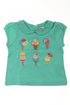 Boutonné dans le dos, col claudine, sérigraphie, broderie.