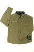 Col plat, 2 poches poitrine, coudières, poignets boutonnés, pattes boutonnées aux épaules, chiffres appliqués, sérigraphie dans le dos.