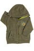 Capuche doublée avec rabat à pressions, écusson, sérigraphie.