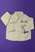 Col plat, poignets boutonnés, sérigraphie, écussons.