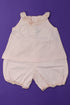 Short taille et cuisses élastiques, débardeur entièrement boutonnée dans le dos, volanté au col.
