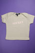 Tee-shirt à manches courtes, encolure américaine pour un passage de tête facilité, manches et taille surpiquées, "Secret" sérigraphié, adorable!