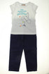 Pantalon, taille réglable, fermeture éclair et crochet, 2 poches, tee-shirt manches courtes, sérigraphie.