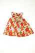 Doublée, sans manches, boutonnée dans le cou, plis plats, fleurs appliquées, pastilles transparentes.