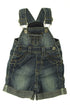 Bretelles réglable par attaches traditionnelles, 5 poches, revers, pressions masquées à l'entrejambe, effet vieilli d'origine.