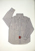 Col plat, 1 poche poitrine, poignets boutonnés, broderie dans le dos, sérigraphie, finitions effrangées.
