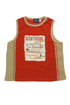 Débardeur, col et emmanchures gansés, pressions à l'épaule, sérigraphie effet vieilli, broderie, comme neuf!