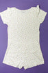 Tee-shirt manches courtes, volanté aux épaules, sérigraphie, short, taille élastique, sérigraphie. Attention, c'est une taille 14 ans.