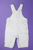 Bretelles réglables boutonnées, pressions masquées à l'entrejambe, jambes retroussables, 5 poches.