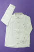 Col plat, poignets boutonnés, poche poitrine, manches retroussables.