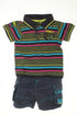 Short, taille élastique, double taille avec liens de serrage, 4 poches, polo manhces courtes, manches resserrées, sérigraphie, écussons.