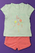 Short en éponge bouclette, 2 poches, tee-shirt manches courtes, pressions dans le cou, sérigraphie.