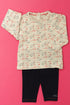 Tee-shirt manches longues, pressions dans le cou, sérigraphie, legging, taille élastique.