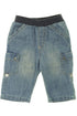 Taille élastique, 4 poches, jambes retroussables, effet vieilli d'origine.