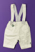 Taille élastique, bretelles amovibles, 4 poches, revers aux chevilles, pressions masquées à l'entrejambe.