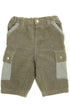 Pantalon en velours fin, taille élastique fermée par pression, 2 poches gansées sur les côtés, 2 bi-matière à rabat à pressions aux cuisses, 2 derrière, superbe!