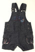 En chambray, bretelles réglables par pressions, 2 poches, pressions masquées à l'entrejambe, logo brodé.