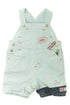 Bretelles réglables par pressions, 4 poches, pressions à l'entrejambe.