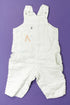 Doublée, bretelles fermées par pressions réglables, pressions à l'entrejambe, 3 poches, broderie.
