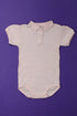 Col plat marguerite, pressions à l'entrejambe, manches resserrées.